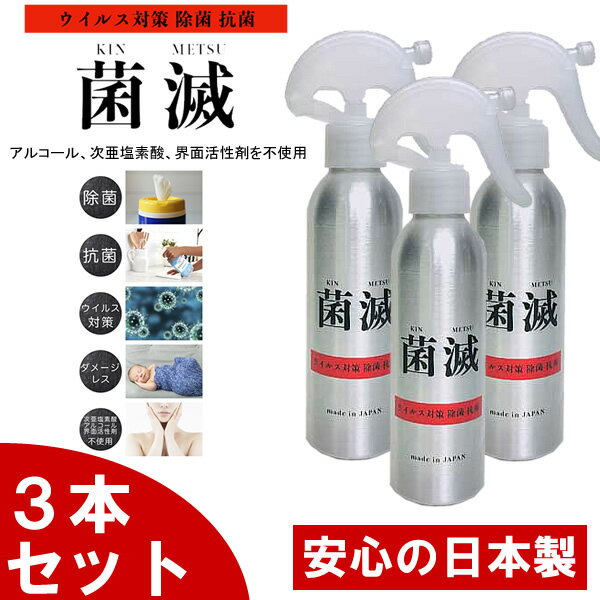 【3本セット】【菌滅】除菌スプレー アルコール 次亜塩素酸 界面活性剤 不使用 日本製 抗菌 ウイルス除去 除菌 ウイルス対策 150ml ノンアルコール 【特徴】 ・抗菌主成分が、菌やウイルスにはたらきかけ、除菌、抗菌効果を発揮します。